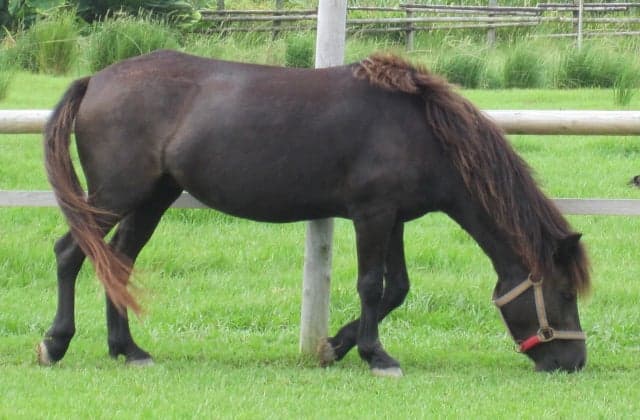 名前は”グラッシー”(小さな草の意)。平成28年5月生まれの雌馬でかつて喜界島に存在した在来馬・喜界馬の子孫。