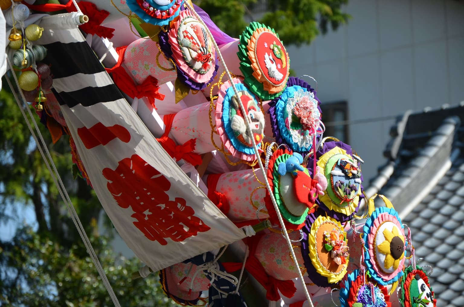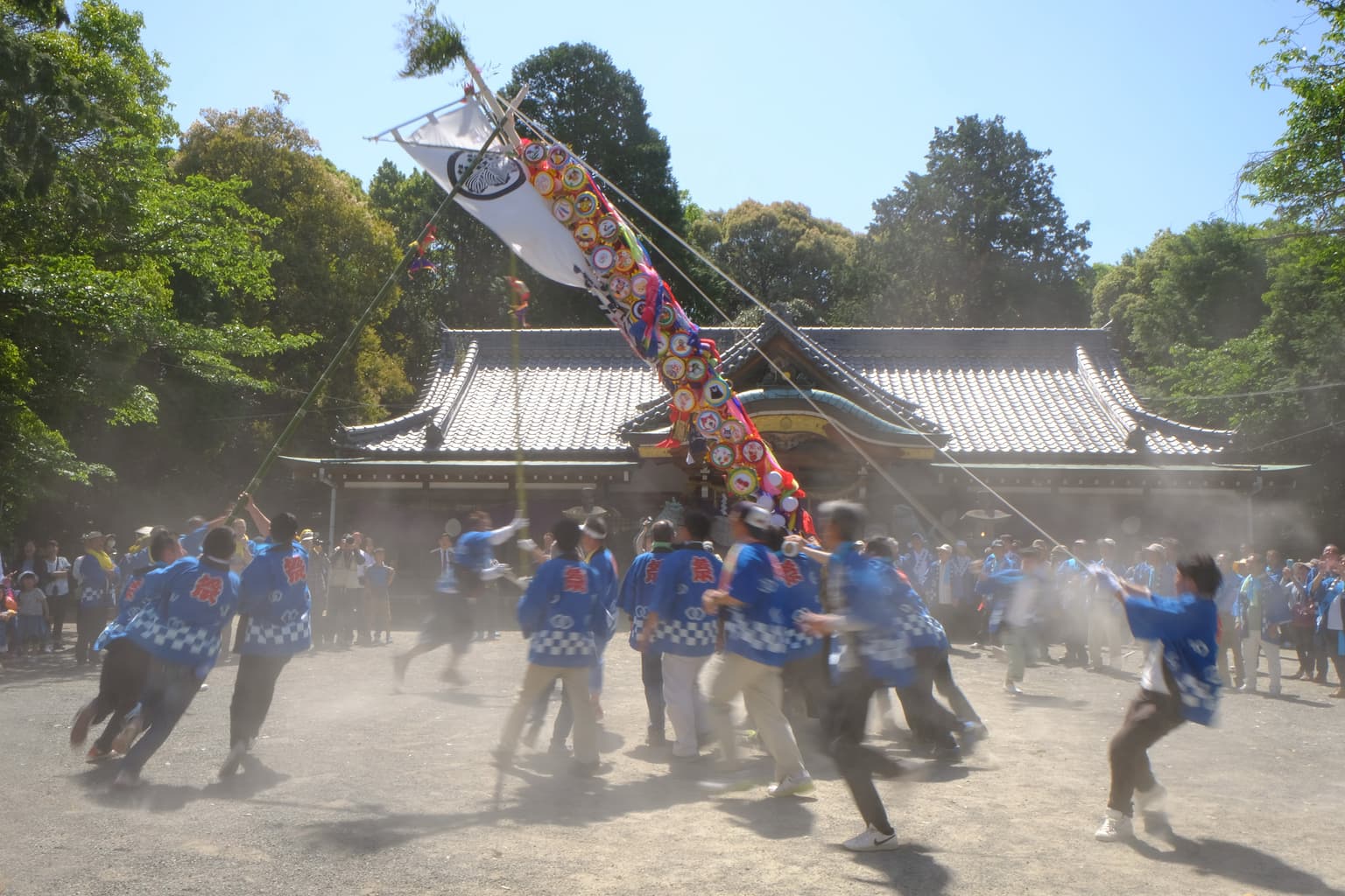 長さ5mの青竹に25個ほどのまくらをくくりつけた枕幟を肩に担って宮入をしたあと、五社音頭を歌いながら日根野・上之郷・長滝町内を練り歩くお祭です。
