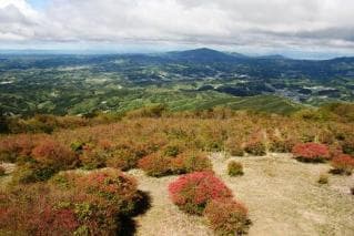 なだらかな山頂をもつ矢大臣山。山頂にはアズマギクとヤマツツジの群生がみられる。