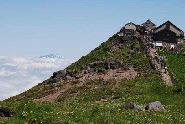 日本百名山のひとつ、出羽三山の主峰「月山」は標高1,984mで、山形県のほぼ真ん中にそびえ立っています。