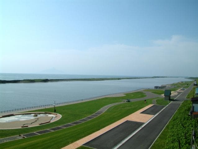 朔北の大河「天塩川」の河口部に広がる河川公園。特に広大な芝生がとてもすばらしく快適な環境です。