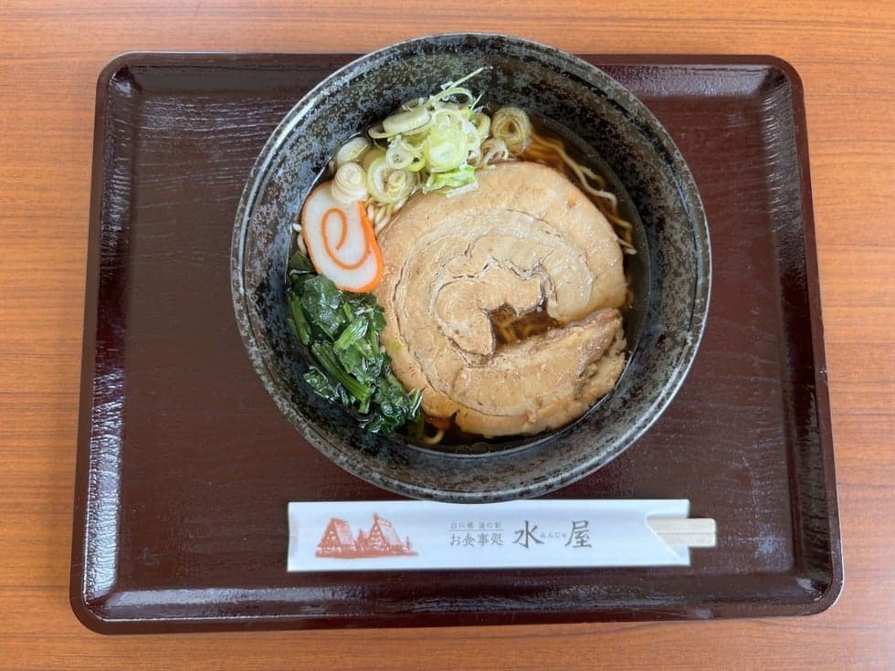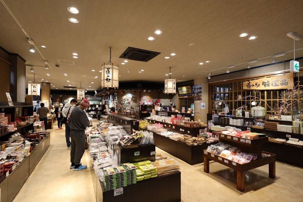 世界遺産の白川郷に車で7分という好立地。「白川郷 合掌ミュージアム」を併設。内部には合掌造りの家が移築展示されており、その大きさに圧倒されます。外観からではなかなか見ることのできない、伝統的な合掌造りの構造などを分かりやすく学ぶことができるので、合掌集落へ行く前にビジターセンターのような感覚で足を運べば、世界遺産観光がより有意義になります。館内はスロープを設けたバリアフリー仕様。入館は無料です。お食事処「水屋(みんじゃ)」では、白川郷ブランドの「結旨豚」を使ったメニューが一押し。「結旨豚のちゃーしゅーめん」の分厚く大きな自家製豚バラチャーシューはとろけるおいしさ。人気メニューは豚骨味噌味の「昇竜らーめん」。白川郷コシヒカリの米粉で作ったラーメンを使用しています。老舗菓子屋が手がける昔からの名物「紫蘇もなか」と「どぶろく羊羹」は、今も変わらぬ白川郷の銘菓。紫蘇もなかは、こしあんに香る紫蘇の風味がさわやか。どぶろく羊羹は、芳潤などぶろくの味をそのまま羊羹にしたようなインパクトのある逸品で、お土産に最適なミニサイズも。また、白川郷の郷土料理「石豆腐」が購入できます。国産大豆と白川村の湧き水を使って作られた地元に愛される味です。農産物の直売所も併設しています。