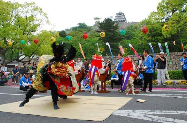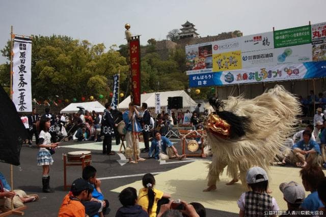 丸亀のまつりを代表する「丸亀お城まつり」は毎年5月3日・4日に行われます。“みんなでつくろう みんなのまつり”を合言葉に、日本の太鼓まつり、まんでガンガン大行進、全日本骨付鳥選手権、丸亀の獅子舞競演、丸亀お城村、丸亀おどり総おどり大会などが催されます。