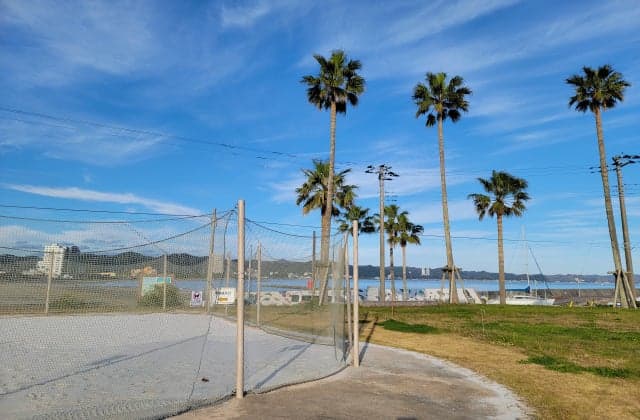 前原海岸に接し、海を間近に感じながらウォーキングを楽しむことができる。