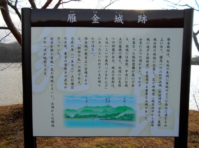 別名、雁ヶ音城・花ヶ崎城。東頸城丘陵最西端に位置する標高156mの山城です。