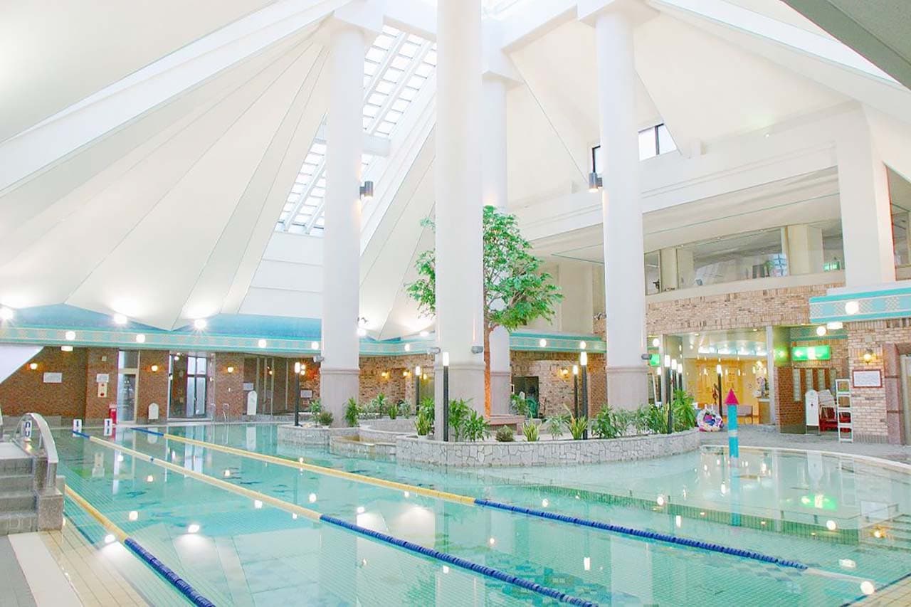 温水プール・スポーツジム・リラクゼーションルーム・検診施設・宿泊施設が一体となった総合保健施設。