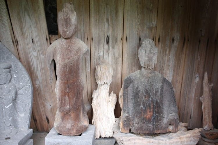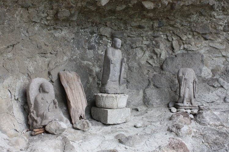 田染荘で知られる田染地区の、奇岩・奇峰からなる間戸耶馬とも呼ばれる間戸の岩屋の頂に、朝日観音・夕日観音が祀られています。頂上へはおよそ20分ほどで登ることができ、気軽に峯入り体験ができる「プチ峯入りコース」としても人気となっています。朝日観音・夕日観音の名前の言われは、朝日観音からは朝日が見え、夕日観音からは夕日が見えるからだと言われています。木造の観音像とともに、石造りの地蔵尊も納められていますが、これらは残念ながらいつ誰が作ったか不明とされています。
