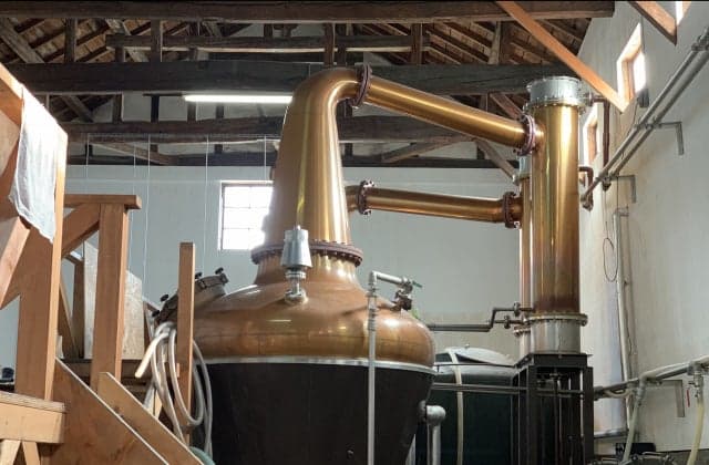明和2年(1765)創業。「笹の川」の銘柄で知られる酒蔵です。日本酒や焼酎を醸造しているほか、東北最古の地ウイスキー蒸溜所「安積蒸溜所」も併設しています。酒蔵見学プログラムでは、酒蔵や蒸溜所、貯蔵庫などを酒造りの歴史を交えながら見学することが可能。戦後からウイスキー製造を続ける安積蒸溜所は、昔ながらの漆喰の白壁にポットスチルがよく映えます。見学の際は予約が必要です。