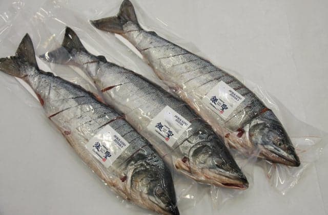 北海道日高沖で生きたまま漁獲される銀色に輝く銀毛鮭の中から、3.5kg以上の鮭のみに与えられる称号。脂ののりもよく、身も美味しいと市場で高い評価を得ています。