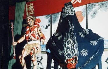鬼が舞台へ出てきて獅子と争う珍しい神楽。毎年日和山神社の秋祭りで行われます。