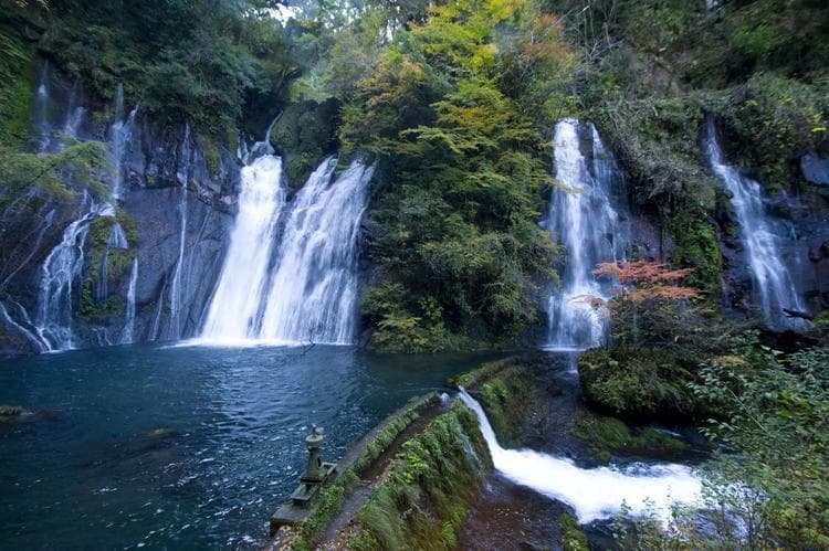 白水の滝へ良く途中に小さな滝を数本見ることができます。
