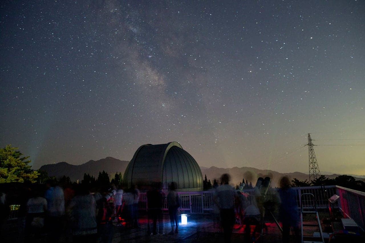 土曜・連休の夜には観望会が行われるほか、8月下旬には世界有数の星空イベント「胎内星まつり」も開催、家族連れが日本中から集まって賑やかです。