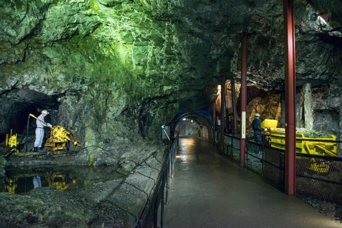 1972年に閉山した金山の坑道を利用して作られた「鯛生金山(たいおきんざん)地底博物館」は、入口から800mほどの距離を見学できる地底博物館です。