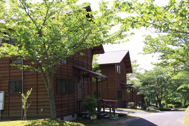 丸岡公園内に8棟のバンガローが建ち、いずれも2階建ての6人用で、キッチン・トイレ・浴室・冷暖房・テレビ付きです。キッチンには、冷蔵庫・電子レンジ・炊飯器・ポットが揃っています。周りは豊かな自然に恵まれ、四季折々の木々や花の香りが楽しめます。