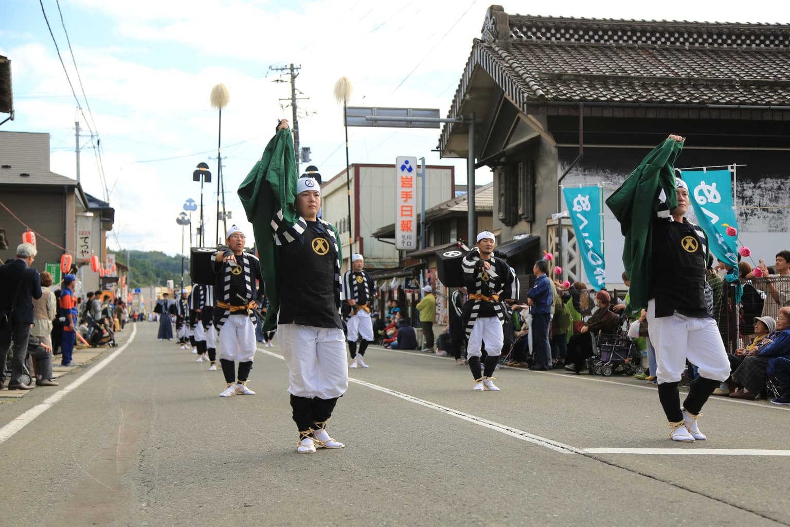 川口地域では230年ほど前から豊城稲荷神社例大祭の神輿渡御、還御の場合は必ず秋浦大名行列(ドッコイ)が神輿の先導となります。あわせて神楽、狐踊り、七つ踊り、山車を奉納した風習が現在まで伝承されています。岩手町の誇り高い伝統遺産芸能であります。