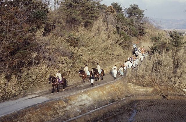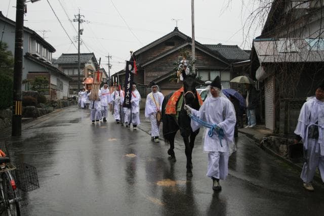 能登路に春を告げる祭り。18日午前7時に気多大社を出発し、七尾市まで巡行します。21日の夕刻に七尾の本宮神社に入り、23日に気多大社へ帰ります。行程約300キロ。
