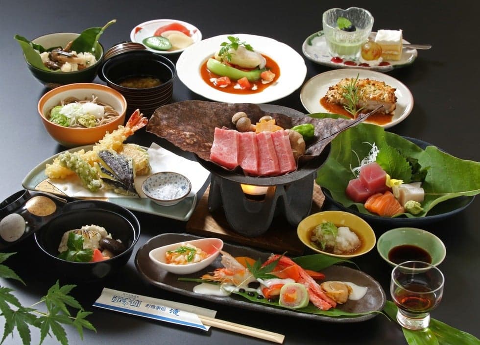 四十八滝温泉しぶきの湯 湯遊館には和・洋のふたつの大浴場があり、心も体もリフレッシュすることができます。露天風呂や岩盤浴、広々とした休憩所もご用意しており、どなたも気持ちよくお過ごしいただけます。お食事処「滝」では地域の特産品や新鮮な食材を生かしたメニューで、地域の方からも広くご利用いただいております。宴会なども対応可能です。近隣には県立自然公園宇津江巣十八滝公園があり、滝めぐりやキャンプを楽しむことができます。心地良いハイキングで汗をかいた後は温泉と美味しい食事で疲れを癒してください。