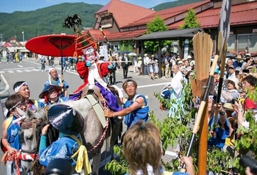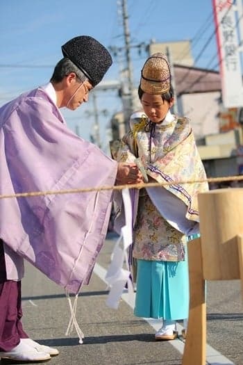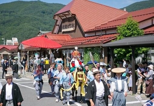 各町の代表である10騎の少年射隊が華やかな衣装を身にまとい、駅から神社に至るまでの各所に設けられた的を馬上から射ながら進行する様子を間近で楽しむことができます。