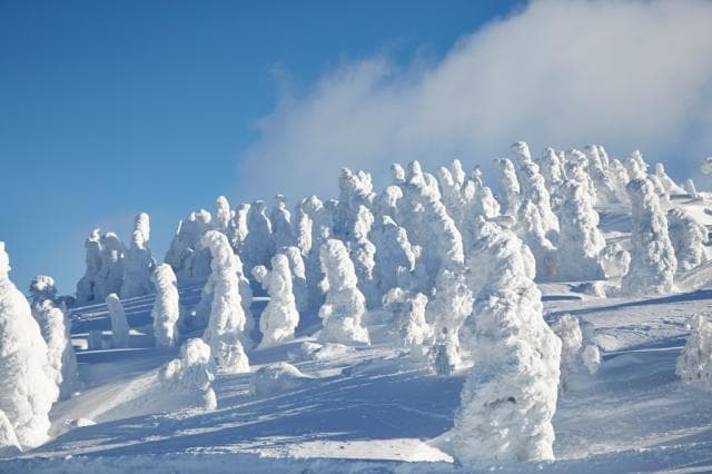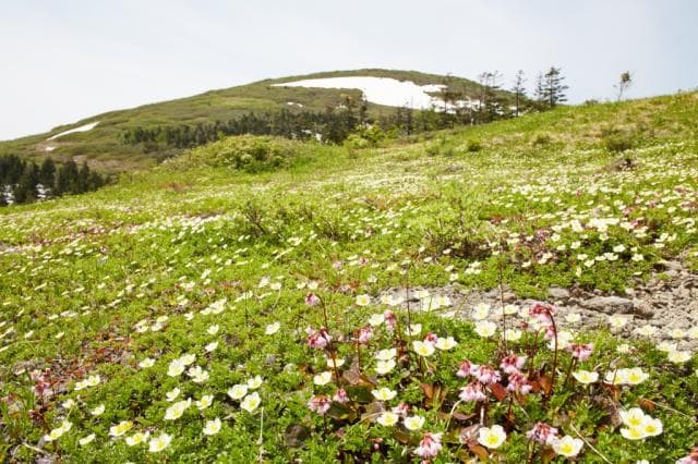 冬場はスキー、スノーボード、樹氷観賞でにぎわいをみせる森吉山。春は花の百名山としてたくさんの高山植物が見られます。秋には鮮やかに紅葉する森吉山が見られ、四季を通して楽しめます。阿仁スキー場のゴンドラで空中散歩をぜひ、お楽しみください。