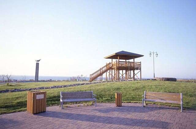 憩の場と展望台がある公園。メム水路やミニパークゴルフ場もあり、晴れた日には展望台から、噴火湾越しに室蘭を望むことができます。