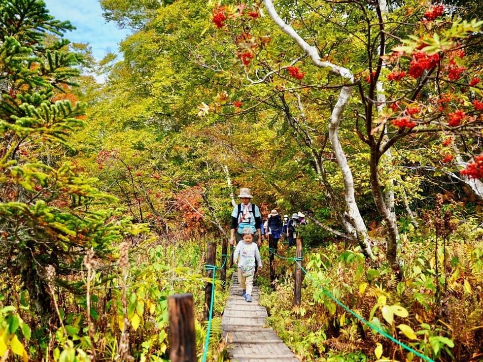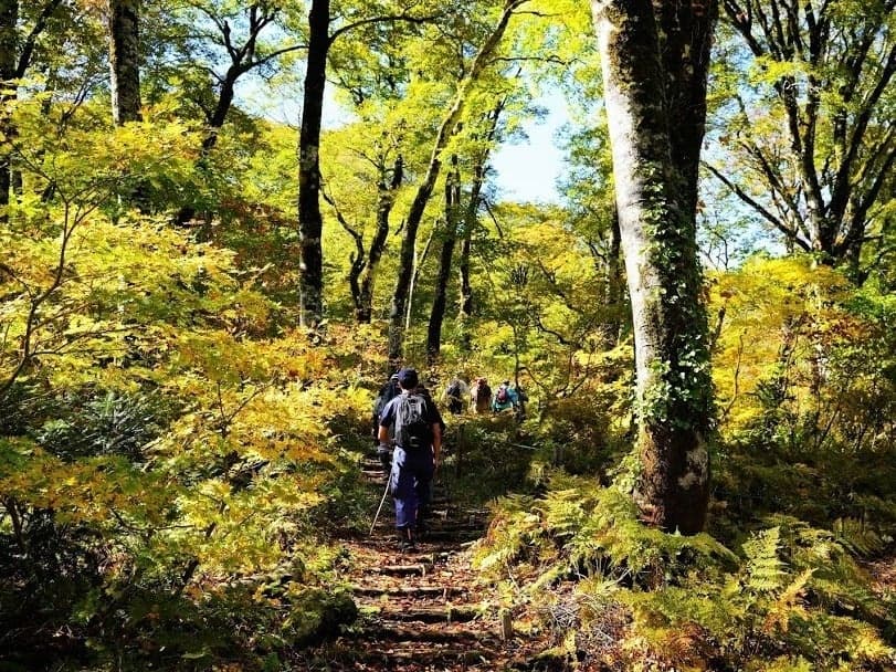 飛騨市と世界遺産合掌造り集落で知られる白川村を最短で結ぶ国道360号線の天生(あもう)峠。小説「高野聖」で有名なこの峠一体は、県立公園に指定されており、雄大なブナの原生林が見事です。10月に入ると急速に始まる紅葉は飛騨・美濃紅葉33選にも選ばれ、県下でも屈指の美しさです。東には北アルプスの雄大な山並み、西には白山連峰という大パノラマの中の紅葉は格別です。例年10月中旬~下旬が見頃です。