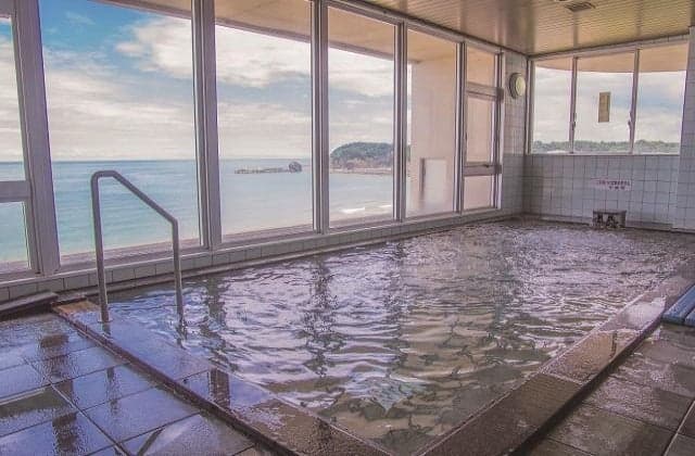 石見銀山観光に便利。国府海水浴場に面した最高のロケーション。最上階に位置する展望大浴場で、日本海に沈む夕日や夜を彩る漁火を眺めながら、ゆったりとお寛ぎください。