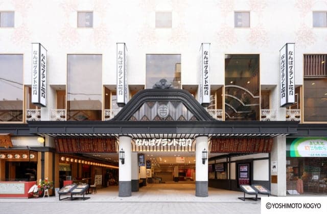 吉本のホームグラウンドとして建設された「なんばグランド花月」。頭文字をとった「NGK」の略称で馴染み深い。吉本タレントや芸人による漫才や落語が上演されている。同劇場の目玉ともいえる「吉本新喜劇」も、連日の上演だ。ストーリーは主に民宿や商店などで展開され、予期せぬアクシデントに登場人物たちが立ち向かうというもの。アドリブを交えた舞台では、新喜劇メンバーによる、それぞれの独自ギャグも披露される。そして、吉本興業創業100周年を機に、リニューアルオープンし、大阪の味・名産品の店舗も充実しており、お笑いを楽しむだけでなく、食べて、体験できるプランなども用意している