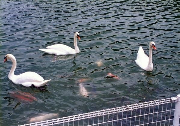 遊歩道が完備され金清池では白鳥が遊び、釣りも楽しめる。(現在、整備中)