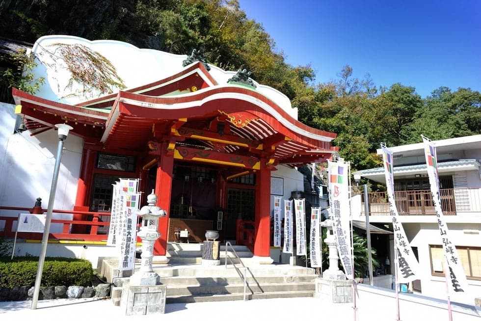 金華山のふもとに位置する日本最大級の岩窟本堂を誇る、高野山真言宗のお寺です。健康祈願で焙烙灸を一年通しておこなっており、お灸に説法などを楽しみできてくださる方が足を運ばれております。奥行16mの岩窟の中に本堂がある為、真夏の時期ですと外気との温度差が10℃ほどあります。