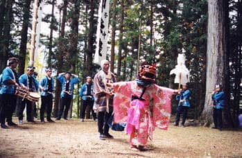 白山神社で行われる獅子舞で、獅子は雌で踊り手が女装して踊ります。毎年春と秋の例祭に奉納されます。