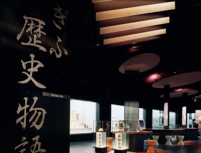 岐阜公園内にある、原始時代から現代までの岐阜の歴史を紹介する博物館。特に戦国時代を生きた織田信長の生涯を体感できる「天下鳥瞰絵巻」や信長の時代の楽市場の様子を一部原寸大で復元した「楽市立体絵巻」が展示されています。戦国時代の衣装や鎧などを試着できる体験をはじめ、「縄文土器の文様をつける」「昔の独楽で遊ぶ」など各種の体験コーナーで楽しみながら歴史が学べます。また、各コーナーでは歴博ボランティアが体験補助や解説をしてくれます。