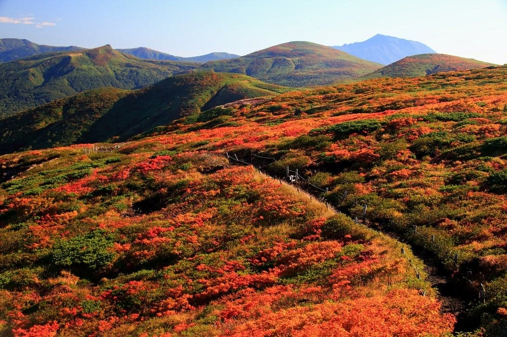 花の山といわれる秋田駒ヶ岳は、秋田県一の標高(1637m)を誇ります。1600メートル級の山でありながら、3000m級の山々で見られる花が咲くことで人気があり、6月1日の山開きから紅葉シーズンにかけて絶えることなく次々と花が咲き続けます。また、水深日本一の田沢湖や岩手山、鳥海山など雄大な景色を眺められるのも魅力のひとつです。