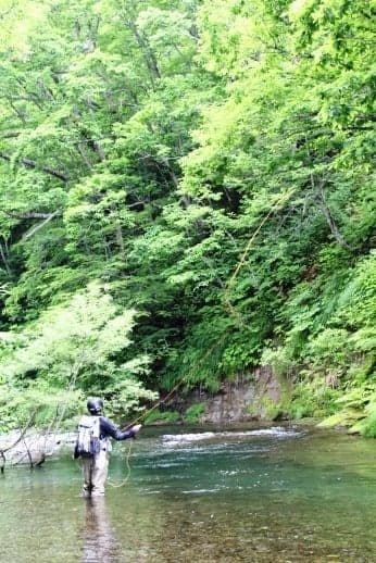 原生林の中を流れ、夏でも手が痺れるほど冷たくキレイな水に大物が潜んでいます。