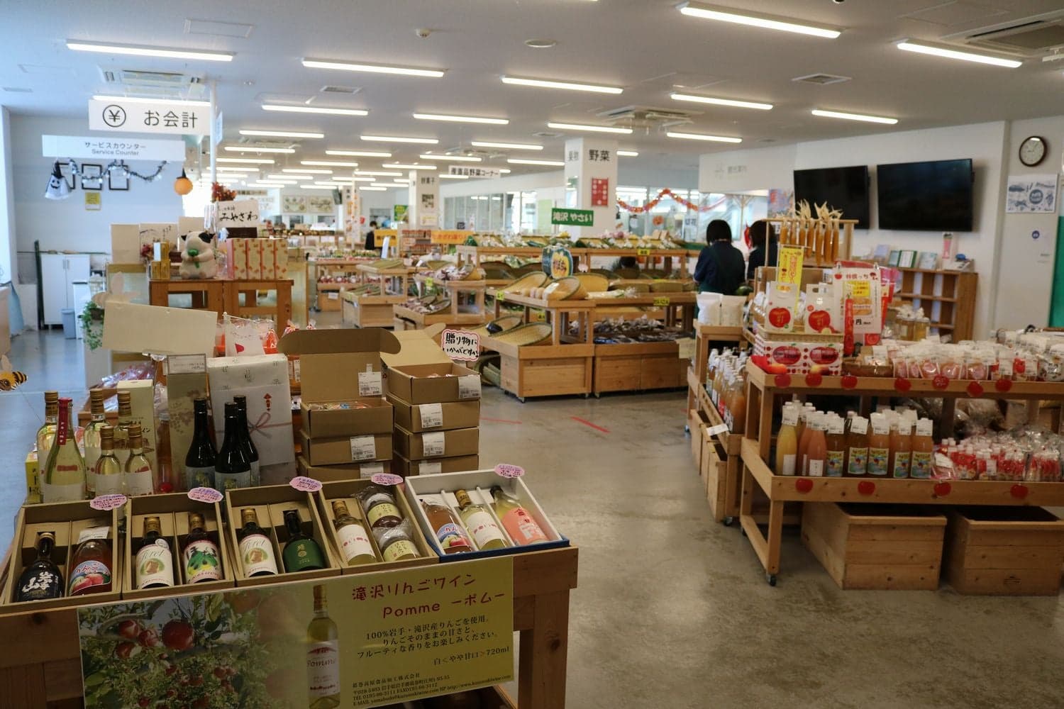滝沢市の産品、土産物が一堂に会し、夏には特産品の「滝沢スイカ」、秋・冬には様々な品種の「りんご」の販売も行われます。また、レストランでは滝沢市内の素材をふんだんに使ったメニューの提供も行われています。