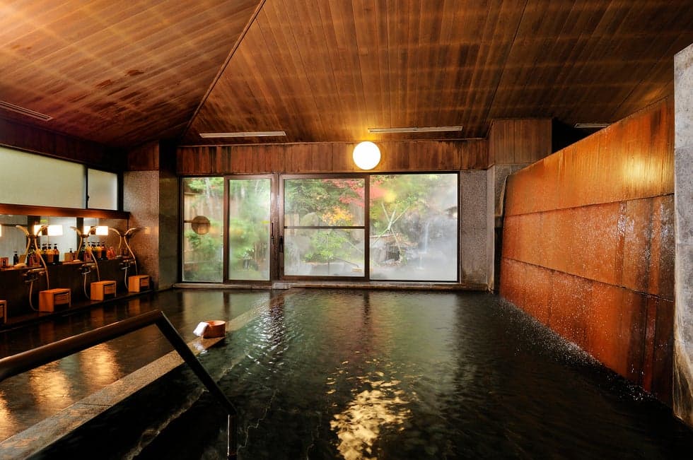 毎分720リットルという豊富な湯量は県内でも随一。源泉掛け流しの天然温泉で24時間ご入浴できます。露天風呂も併設されております。食事は地産地消をコンセプトに有機無農薬野菜も取り入れた旬の味覚満載の「創作懐石料理」が多くのお客様にご好評を頂いております。お部屋はゆったりとした和室で窓から見える当館の庭は春夏秋冬の趣きが感じられます。