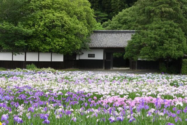 江戸時代建築の古い庄屋屋敷「加茂荘」と、門前に咲き広がるハナショウブ園。古花から新花まで約1000種100万本が栽培・保存されています。園内展示温室では品種改良を重ねたオリジナルアジサイやその他様々な花の展示が愉しめます。また、庄屋屋敷「加茂荘」や、屋敷の南に位置する古寺も見学できるなど広大な敷地内を隅々まで散策でき、開園期には多くの観光客で賑わいます。