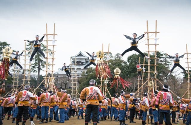 石川県金沢市で新年の恒例行事となっている人気イベント。市内の各所の消防団員により、約40本以上の梯子が立てられ、歴史ある加賀鳶の勇壮な梯子登りと一斉放水が行われます。江戸の加賀藩邸を守った大名火消し「加賀鳶」の伝統を受け継ぐ、現代の火消したちによる勇壮な加賀鳶はしご登り演技は必見だと評判。来場の際は駐車場がありませんので、公共交通機関のご利用をお願いします。