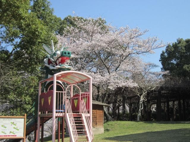 四季折々の花が咲き乱れる公園は、遊歩道や東屋、公衆トイレが完備され、訪れる観光客のいこいの場となっています。また、63mの大蛇スライダーは子どもたちに大人気。