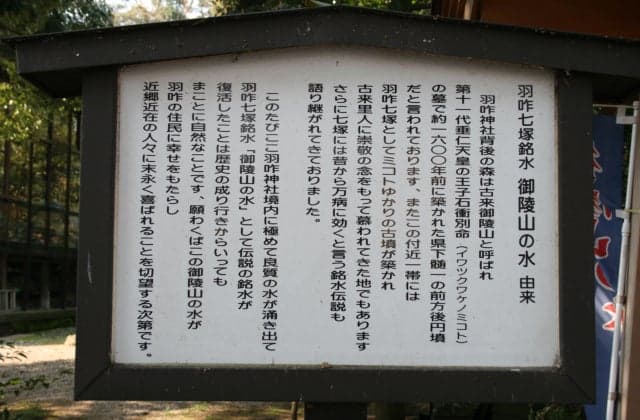磐衝別命や怪鳥を退治した三匹の犬、磐衝別命の宝物などを祭った七つの古墳が残されています。これらは羽咋七塚とよばれ、羽咋の神話とともに大切にされています。