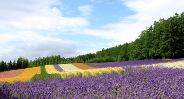 ラベンダーをはじめ、ポピー、コスモス、カスミ草などが7、8月に花畑に広がる。園内には休憩所の「ポプリの舎」、香水の調合を見学(要予約)できる「香水の舎」、「花人の舎」、「蒸留の舎」、「ポピーの舎」などがある。おみやげ品も売店に多数ある。