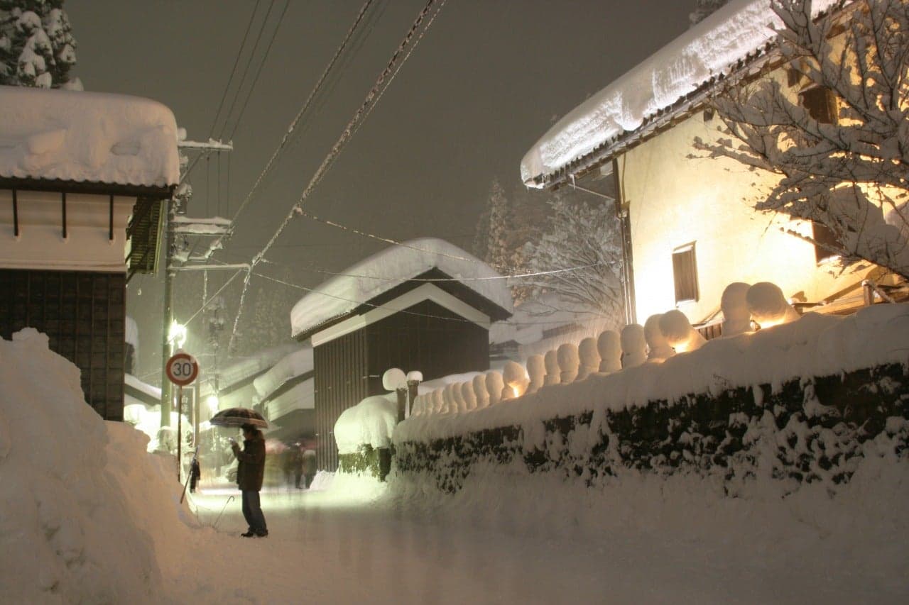 日本屈指の豪雪地帯において、独自の建築様式が残る地区です。平成24年に文化庁より重要伝統的建造物群保存地区(重伝建)に選定。黄土色の大壁と縦長窓が特徴の大庄屋・山岸家をはじめ、土蔵造りを基本とする独特の建築様式を残す民家が軒を連ねています。
