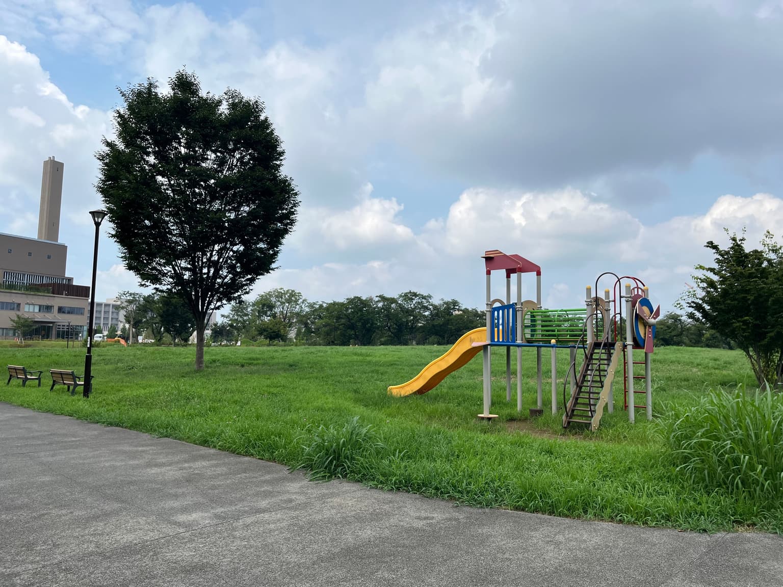 立川基地跡地の土地区画整理事業として整備された公園。 正面入口から左手に向かった一角には、飛行機を模した乗り物遊具や、ヘリコプターと飛行機型の滑り台などの幼児・児童用の遊具が置かれている。右手に進んだ先には、桜並木道があり、歩道沿いには健康遊具も設置。広々とした空間と鮮やかな緑が特徴で、散歩コースとしても最適。