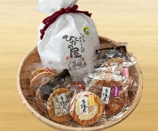 筑西市優良産品推奨品。 ひがの屋13枚入り手焼き巾着。手間ひまを惜しまず一枚一枚丁寧にひっくり返しながら焼き上げた薄焼き煎餅。しょうゆ、のり、梅ざらめ、こしょう、七味、昆布、チーズ味等々。国産米を使用し食の安全そして徹底した衛生管理の元で作られた幅広い年齢層に好んでいただけるお品です。