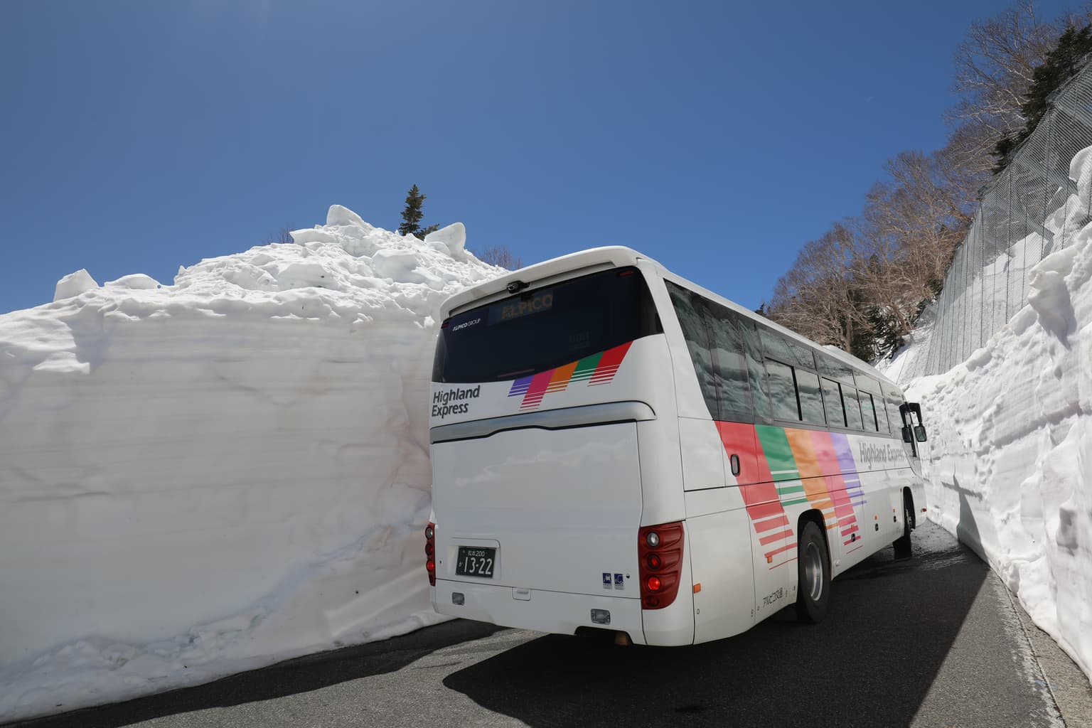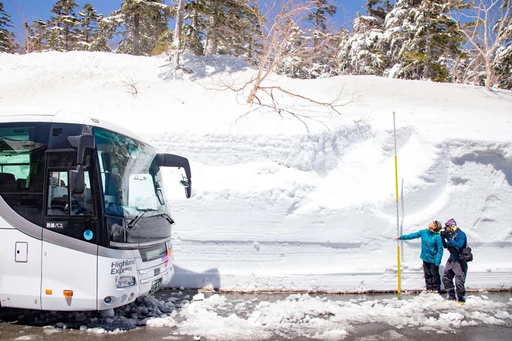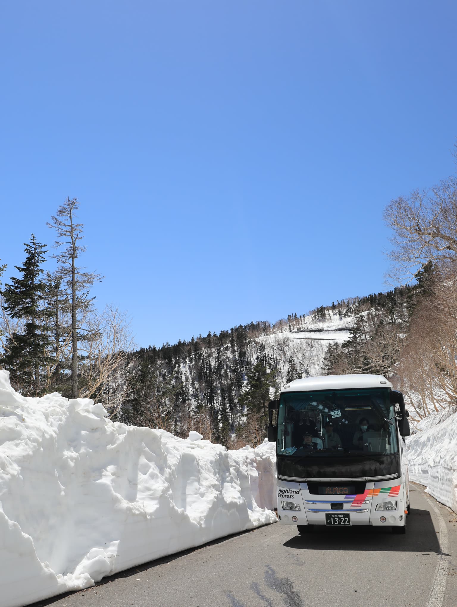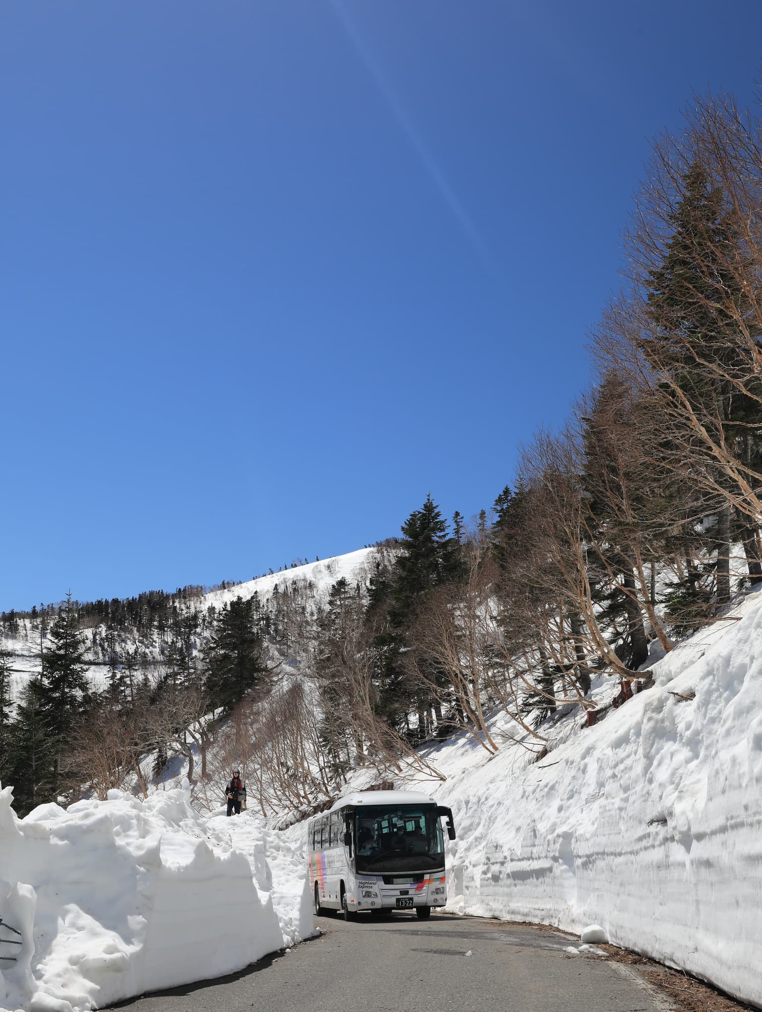 高原に春が訪れても山の上はまだまだ雪が残る春先に、乗鞍岳春山バスが運行します。
