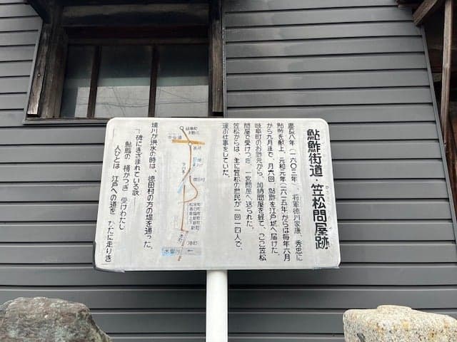 長良川の鵜飼でとった鮎を使用した鮎鮨(あゆずし)を将軍徳川家康に献上する為に通った道。岐阜城の麓にある御鮨所を出発し、加納宿を経た荷物は、笠松の問屋「高嶋家」で引き継がれ、一宮問屋へ送られた。