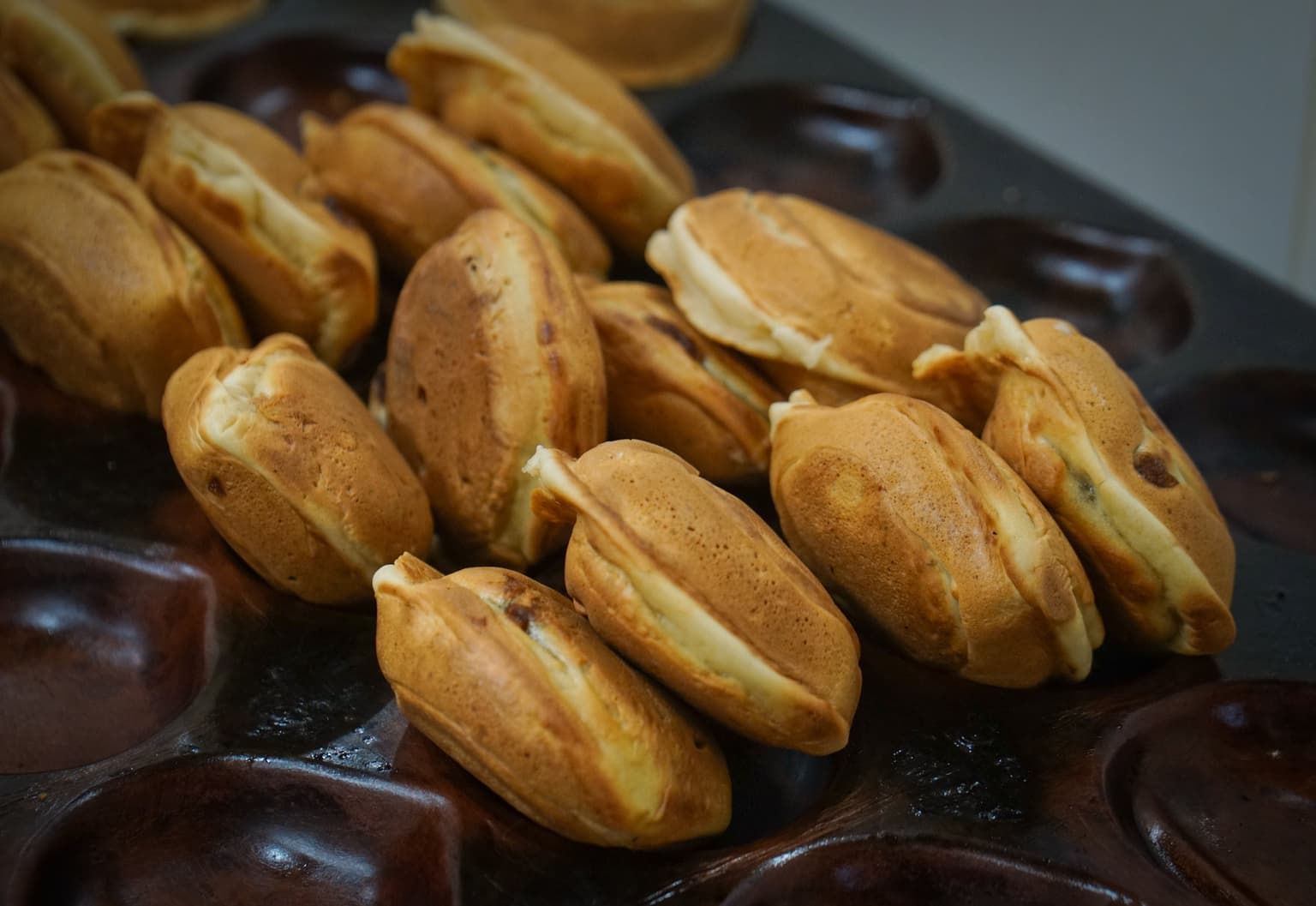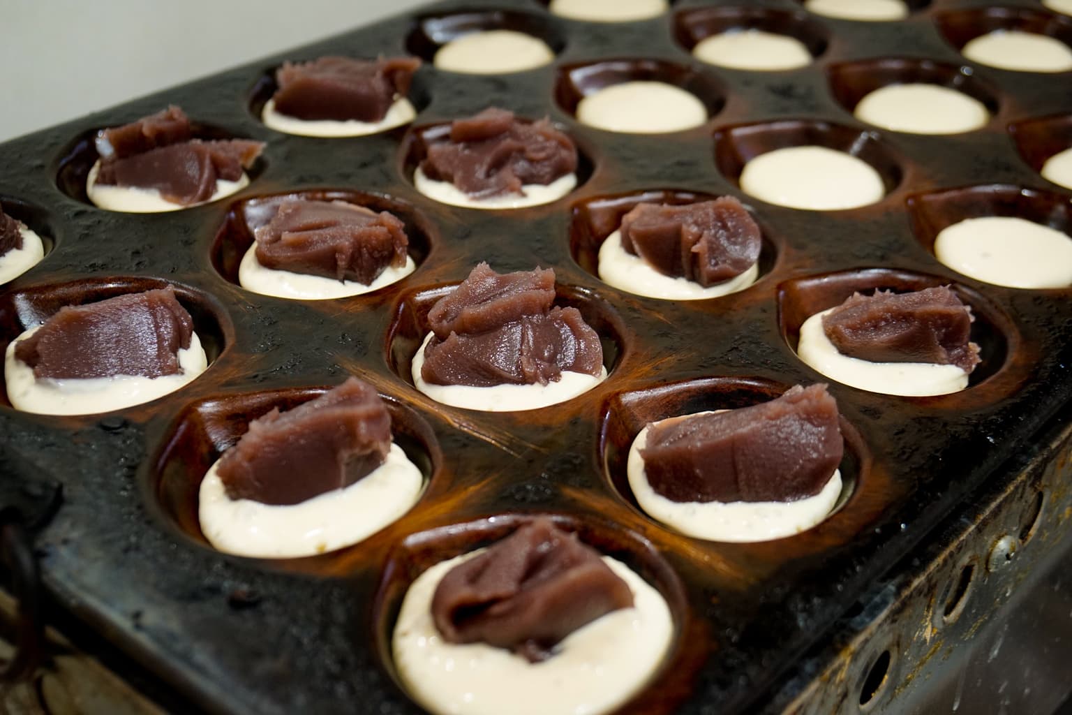 小麦粉、砂糖、ベーキングパウダーで作った皮の中には、小豆の風味を際立たせた自家製餡が詰まっています。
