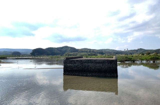 大浦塩田跡は大浦川の河口に広がる湿地帯にあり、種子島で初めて“塩田式の製塩”が始められたところです。それまでは“浜で海水を焚いて塩を取る方法”でしたが、量がたくさん取れないため塩が不足していました。“種子島の女島主”こと松寿院はこの塩不足を憂い、塩田開発に取り組みました。安政3(1856)年の調査でこの大浦川河口付近が塩田に最適であることがわかり、翌夏からこの地で製塩を始めました。最新の製塩法を導入し、さらに塩田の拡張工事を行なったので、大量に生産できるようになりました。