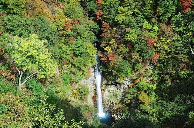 幅約2m、高さ20mの滝で、秋には色鮮やかな紅葉と滝のコントラストが楽しめます。2011年「那須平成の森」開園に伴い、その施設の一部として観瀑台が設営され、閉鎖される冬期を除き季節ごとの姿を一望できるようになりました。