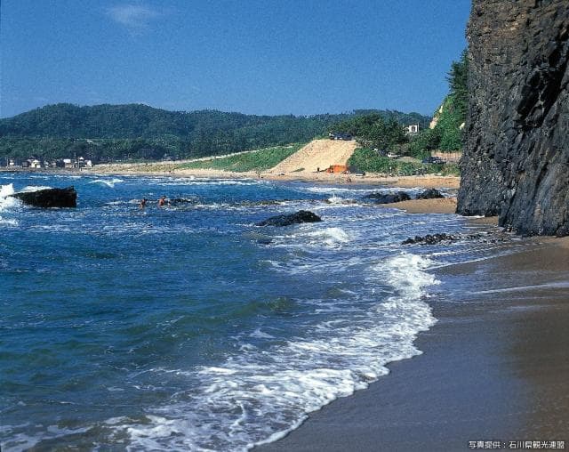 乾いた砂の上を歩くと「キュッ、キュッ」と音を出すことから、昔のおさよと重蔵の悲恋物語に結んで「泣き砂の浜」と呼ばれています。固い石英の粒が擦れ合い、空気の作用で音が出るといわれています。