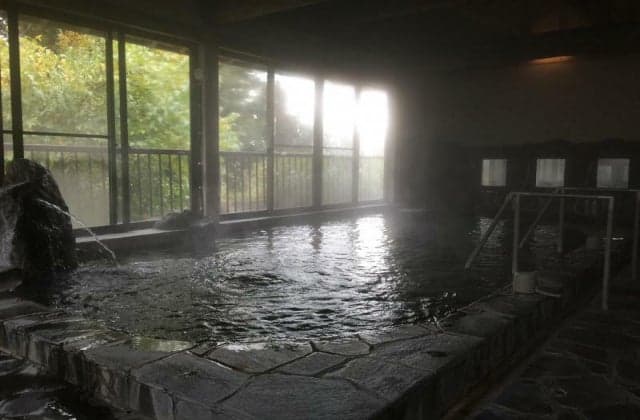 田舎風景に囲まれた極楽温泉。ぬめりがあり、美人の湯とも言われる。大浴場と貸切の家族風呂・露天風呂がある。